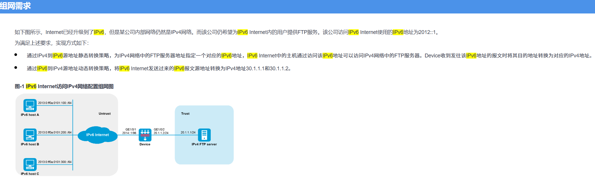 该公司访问IPv6 Internet使用的IPv6地址为2012::1。