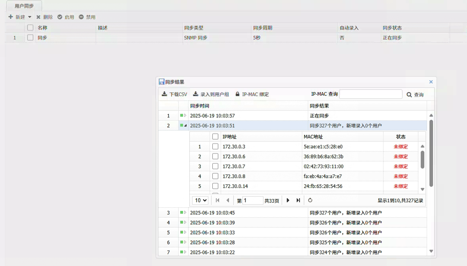 你的终端的网关不是在acg上吧,是在核心交换机上对吗?acg是否为桥接部署,网桥地址需要配置个地址与交换机互联,acg的snmp同步时需要网桥接口有ip与交换机通信,才能获取到跨三层终端的mac地址