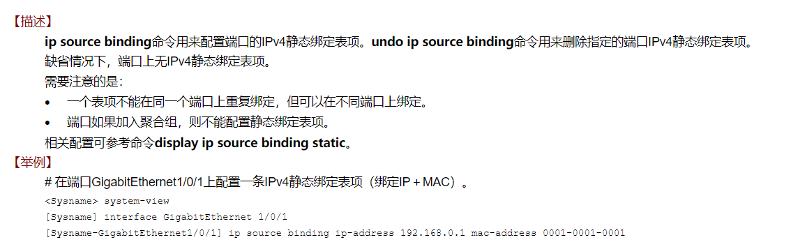 全局 arp static <IP地址> <MAC地址>