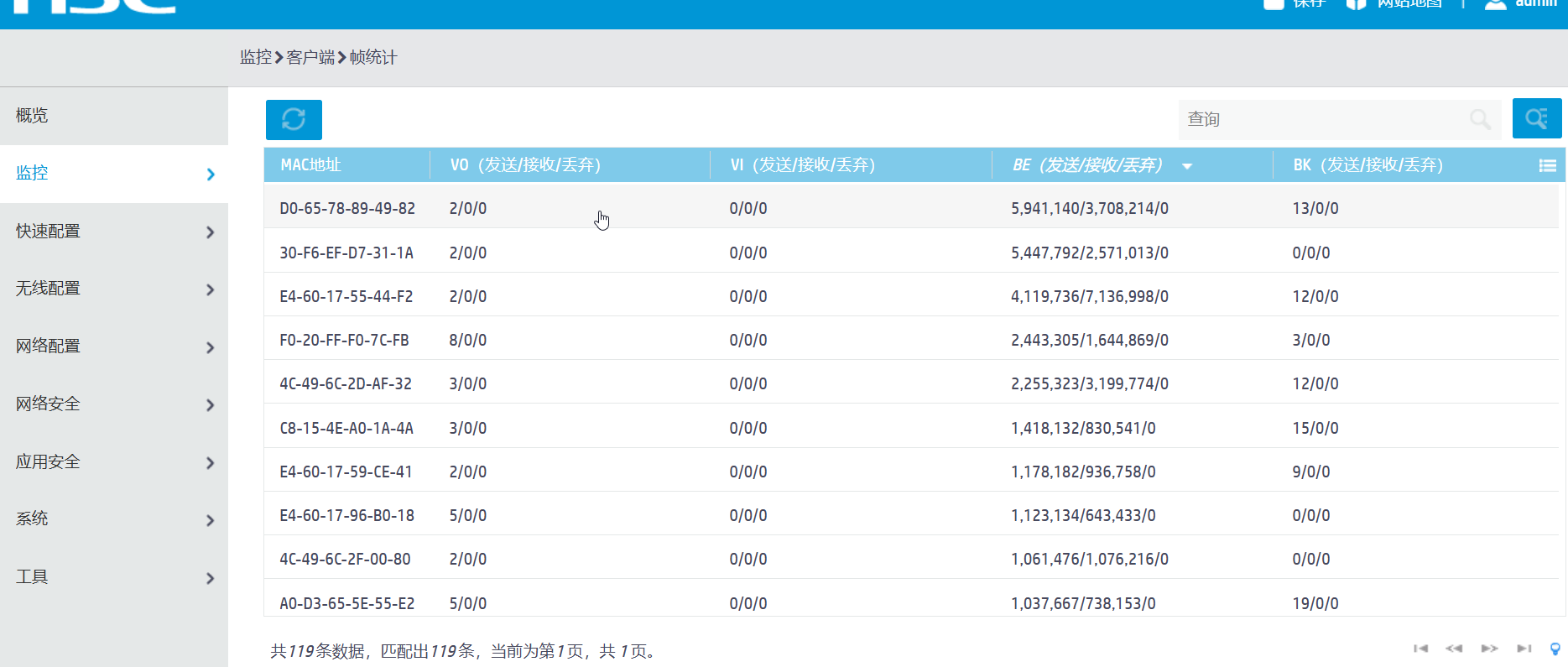 监控客户端 里面 ,帧统计 字节数统计,能反馈多久时间?