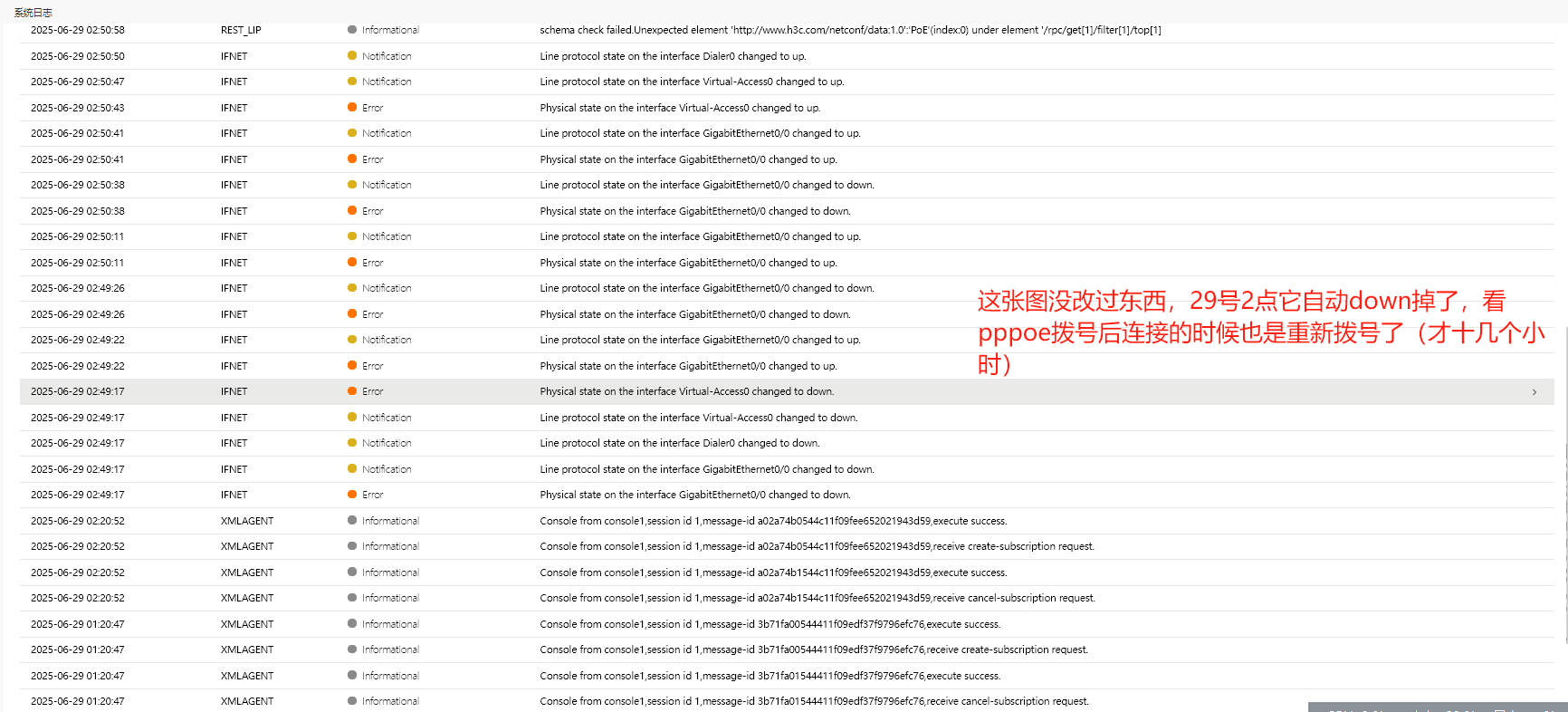 日志上看29号是物理线路异常引起