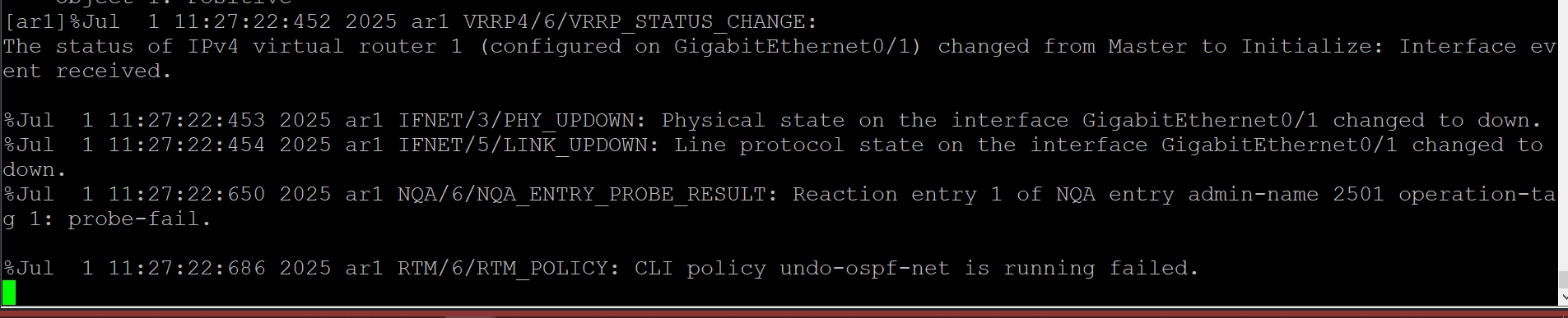 当前测试结果是%Jul  1 11:27:22:686 2025 ar1 RTM/6/RTM_POLICY: CLI policy undo-ospf-net is running failed.