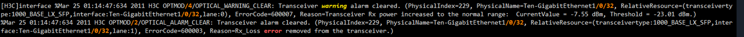 日志就是说收光低了,然后进入告警了,后面又提示收光弱的告警消除了,这个目前可能故障消除了,也可能复现,还是建议是更换光模块稳当。