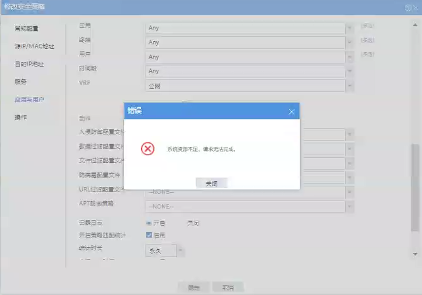 之前用的正常的,今天突然sslvpn就访问不了了,刷新后显示vpn网关不生效,这个什么问题?这个现在的资源利用率,我编辑安全策略保存,提示资源不足这个和今天sslvpngateway 异常有关系吗