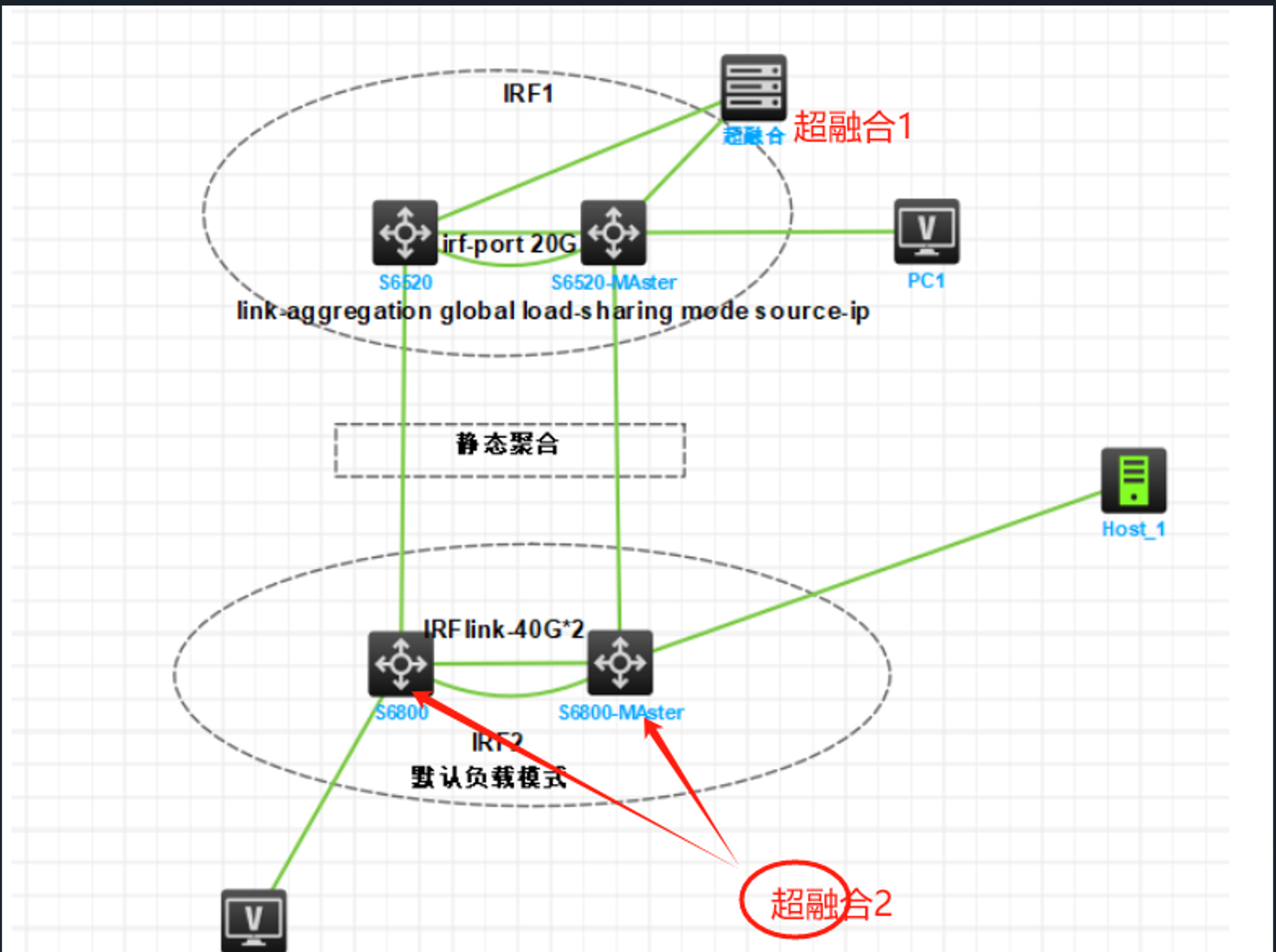 拓扑是图的那个样子,PC1和PC2是服务器,PC1去拷贝超融合1的时候正常,PC1拷贝超融合2的时候就慢,然后PC2拷贝超融合2的时候也是正常,PC2拷贝超融合1的时候就比较慢