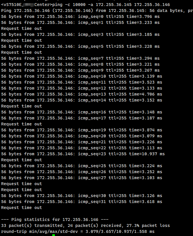 36.145在核心上,36.146在对端交换机上,通过光纤直连,确定是直连丢包