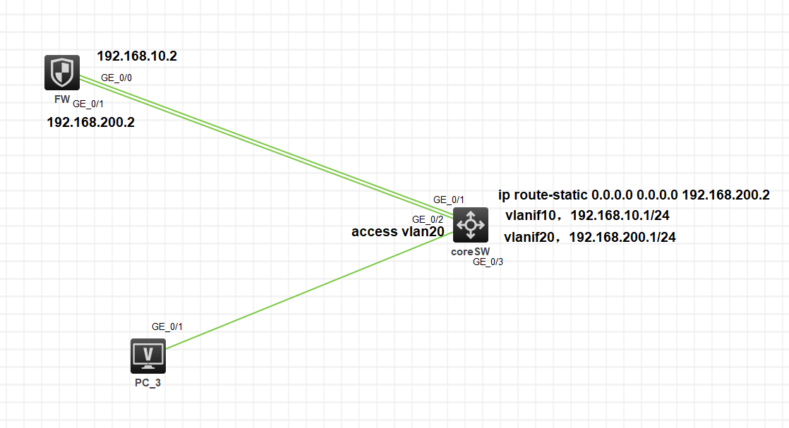 然后防火墙的ge 0/0接口配置一个IP 为 192.168.10.2 就行了