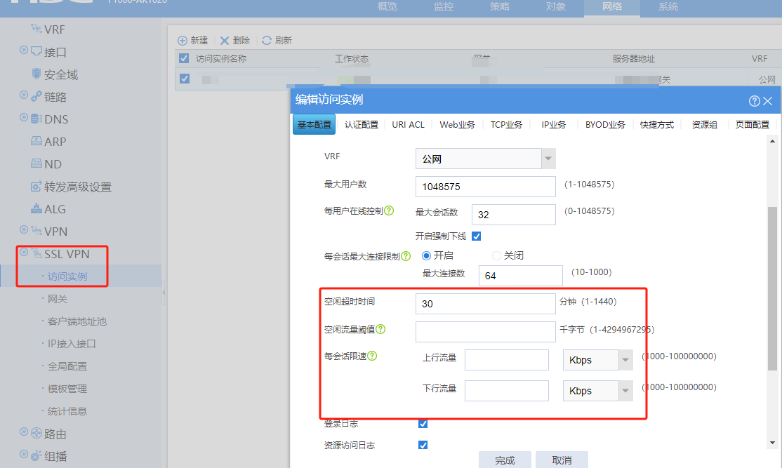 该类型防火墙中的SSLVPN服务,在用户链接量多的情况下会出现访问巨慢,甚至无法打开的情况,有没有那个方法可以配一段时间之后用户自动断开链接。
