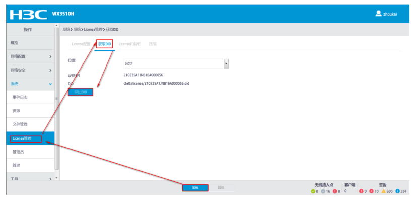 无线控制器需要增加ap买了授权码 提示输入设备DID但我登录设备的web界面找不到License管理那个界面