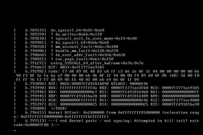 内核日志显示 do_syscall_64内存访问错误 → 虚拟化指令模拟异常