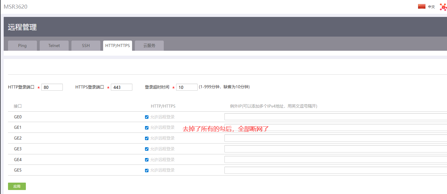 登录华三路由器日志发现有很多暴力登录,为了安全决定关闭http 和https 登录 于是登录web界面取消了http相关的勾,结果发现路由器无法上网了