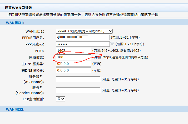 ER3200G2路由器,有两条宽带,一条1000兆,一条200兆,同样是电信运营商,配置WAN口的适合,这个位置网络带宽需要按线路填写吗?一个填1000,一个填200。