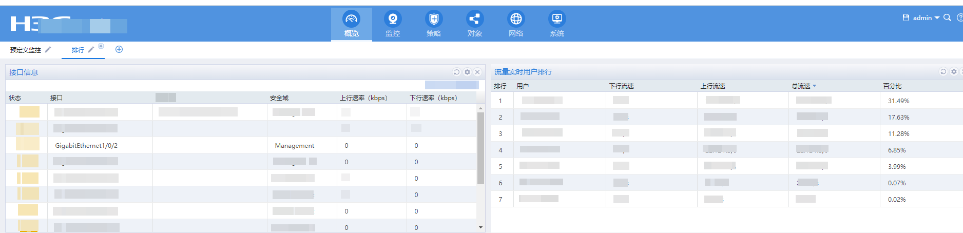 开启会话统计功能(必要前提): 查看会话流量详情: 流量监控页面(Web界面): 流量报表功能: 注意:F100防火墙不提供直接的“会话实时带宽”命令,需通过会话统计中的字节数变化手动计算速率。建议长期监控时使用日志主机或网管平台分析流量趋势。 总结:关键步骤是启用session statistics enable启用会话统计功能,否则无法查看流量统计信息。display session table命令结合verbose参数查看具体会话的流量统计:display session table source-ip <IP> destination-ip <IP> protocol <协议> verbose