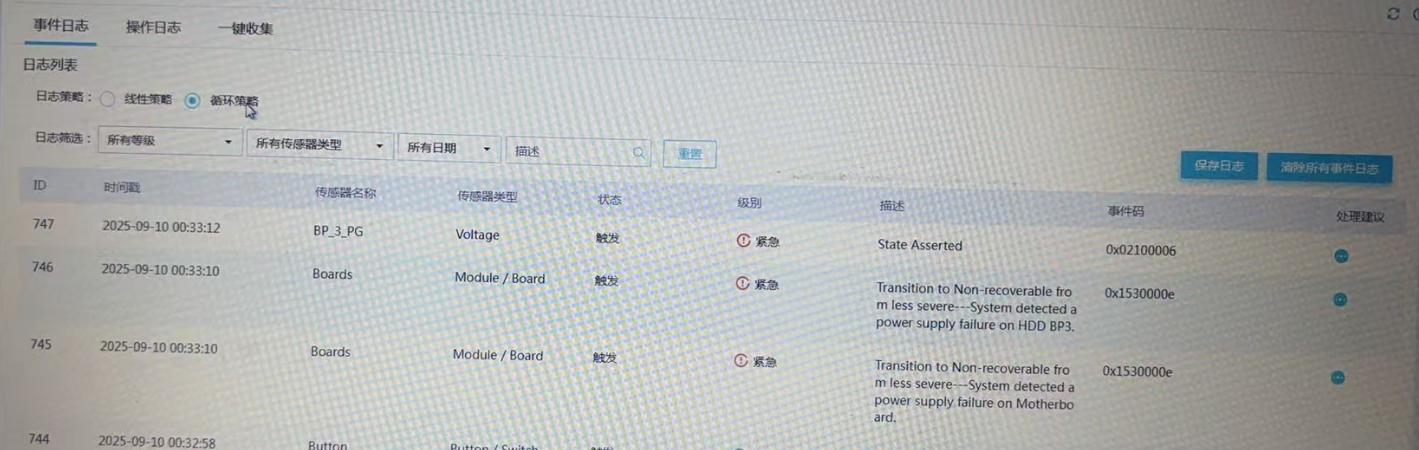 看日志是供电异常,保内联系400分析