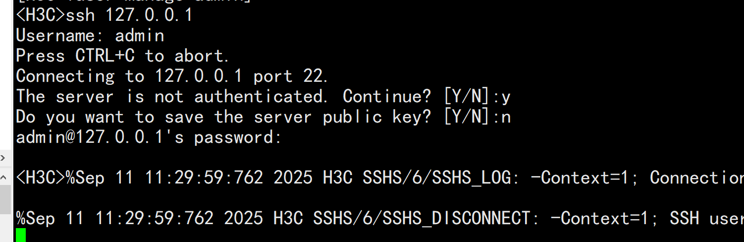 Username: admin Press CTRL+C to abort. Connecting to 127.0.0.1 port 22. 输入账号就这样,没反应了