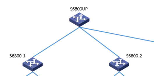 EVPN组网如图,S6800UP为Spine,S6800-1为leaf-1,S6800-2为Leaf-2