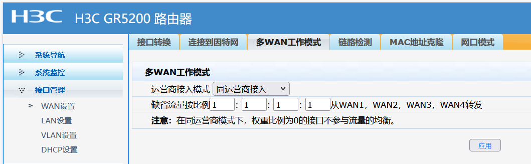 H3C GR5200使用4条宽带,如果不做策略路由,200台PC网络会不会随机使用其中一条宽带,4条是否同时工作