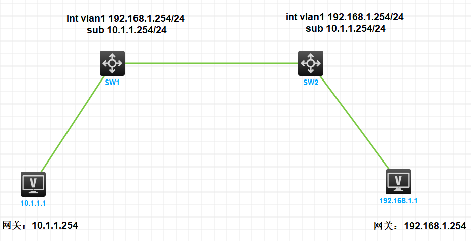 优点:组网混乱下挂设备混接,可以用sub地址,不用每个交换机及接口去划分vlan