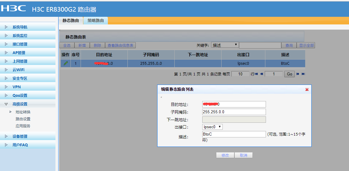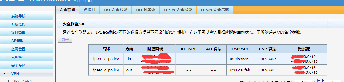 两个网段不在一个网段,路由也写,对端信息通过隧道发出,但没有收到信息,本地段业也无法ping通对端 本地段为h3cER8300g2 对端 华为AR系列