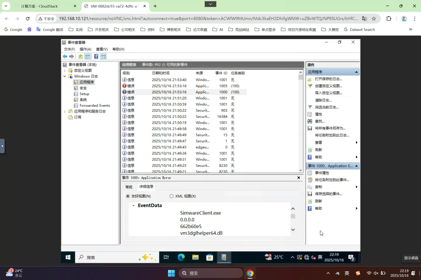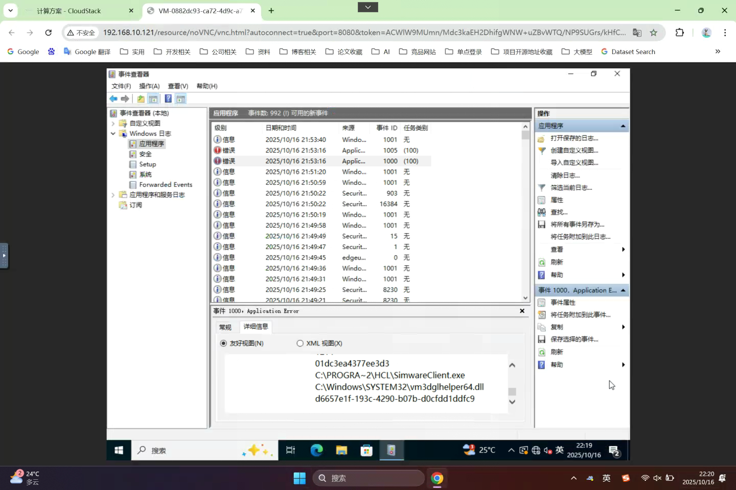 我尝试前往windows的“事件查看器”中,发现了应用程序的错误日志,如下