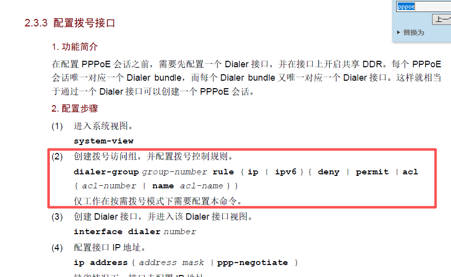 缺失配置:当前配置中没有dialer-rule,导致防火墙不知道哪些流量需要触发 PPPoE 拨号(电脑拨号通常由系统自动触发所有流量)。