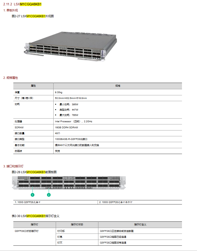 表2-30 LSXM1CGQ48KB1指示灯含义