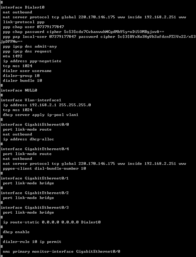 退出后保存,这样就可以了,记住,拨号网络,nat映射、nat转换是做在dialer口下的,不是做在绑定dialer口的物理口下的,