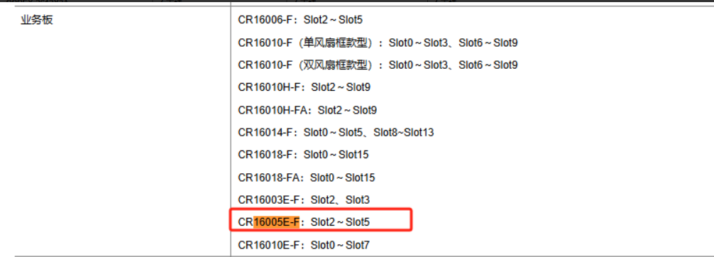 CR16005E-F不支持将CSPEX-2314X-G2插卡配置在0号槽位(即母板位置),必须将其插入支持的扩展槽位。当CSPEX-2314X-G2插在0板时,系统会因无法识别或供电导致device状态为power-off。