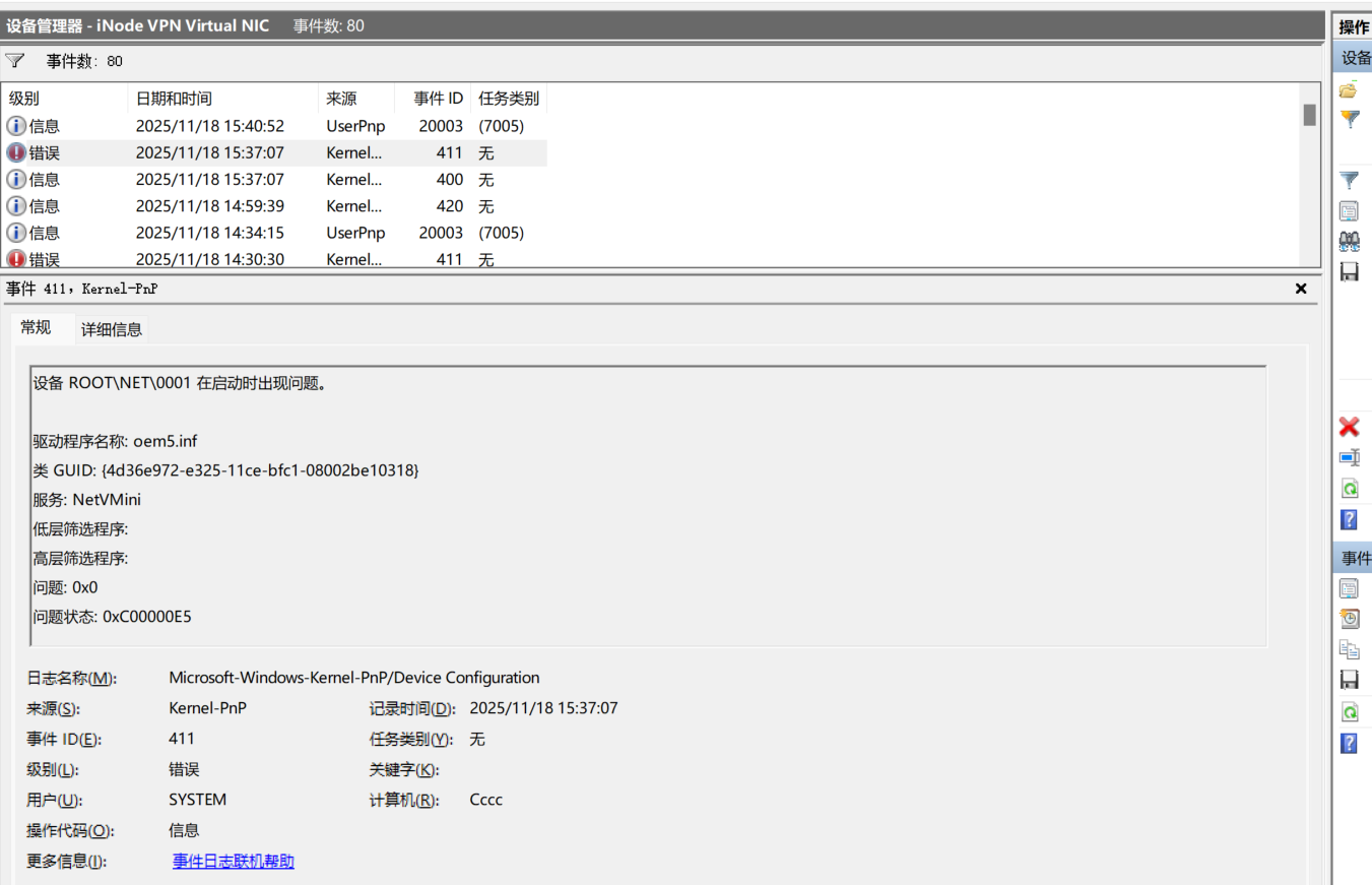 虚拟网卡未安装到电脑上,驱动显示未运行,详细信息想粘贴到问题里面的,系统提示有敏感词粘贴不了