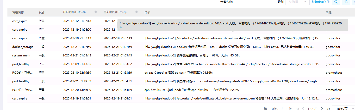 从您提供的截图来看,您遇到的是 CloudOS 平台中非常关键的 cert_expire(证书过期) 严重告警。