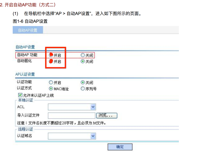 2、开启ac的自动注册和自动固化功能;