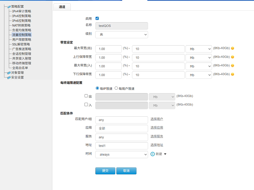 查看配置发现先查过的流控策略配置在了bvi口上,流控策略无法生效