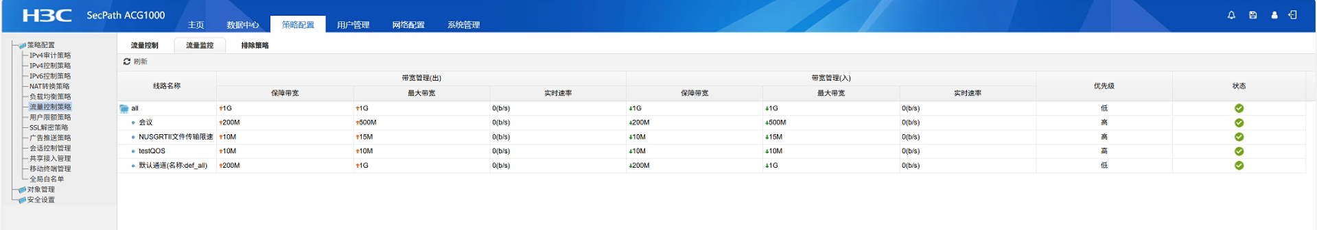 设备上做了流控策略,做了保障带宽,做好后发现流量监控始终没有实时速率。