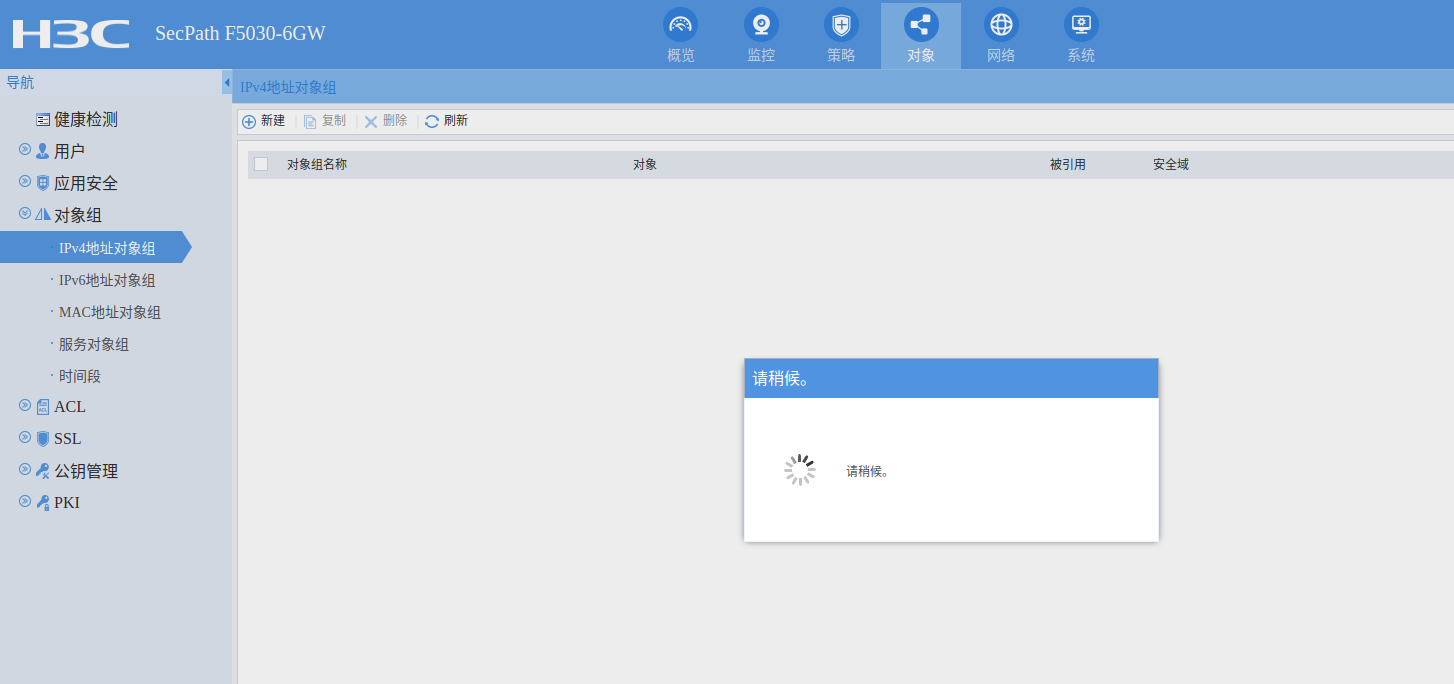 2. **问题现象匹配**:您描述的“Web策略页面空白、IPv4对象组加载无响应”与已知问题“web策略显示无,命令行下接口存在”现象一致,该问题在设备重启后可能出现,特别是在策略配置较多(如60条)时更易发生。