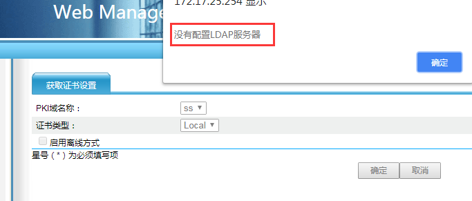 点击确认后,报如下错误,提示“没有配置LDAP服务器”