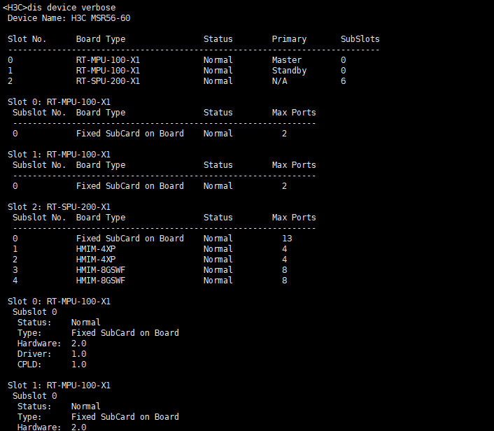 4.`display device`看单板状态
