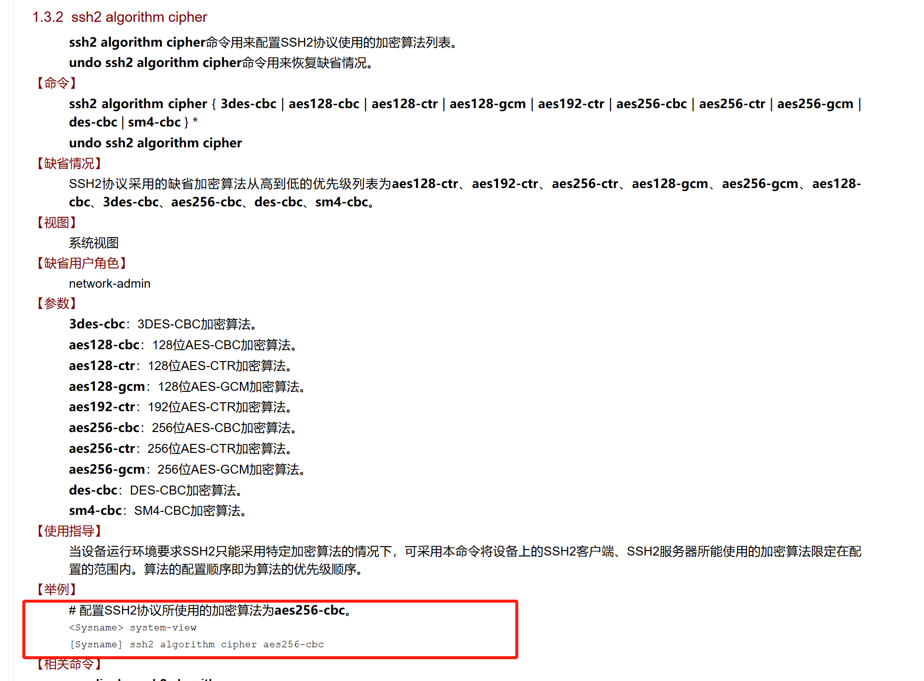 ·     aes256aes256-cbc加密算法。仅FIPS模式下支持本算法。