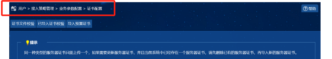 进入 系统管理 > HTTPS访问参数,可查看已配置的服务器端证书或双向证书