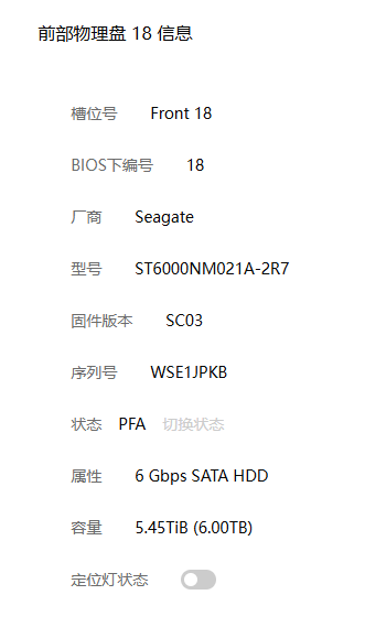 • 开机状态下,通过管理界面确认故障盘槽位(Front 18)。