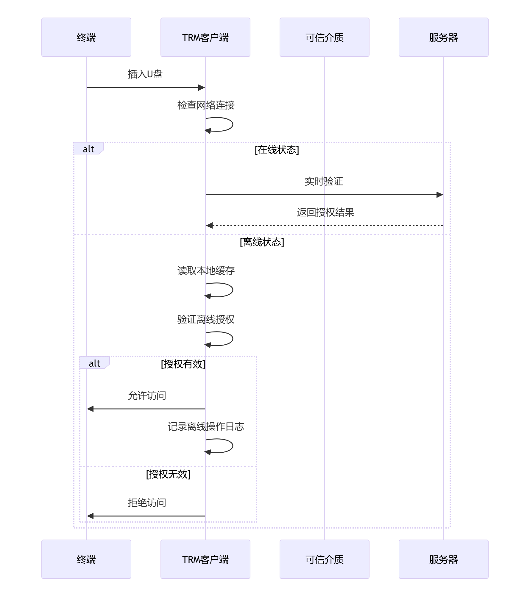 介质已授权 | U盘已在TRM系统注册并授权给该终端/用户 | 在服务器控制台查看授权状态 |
