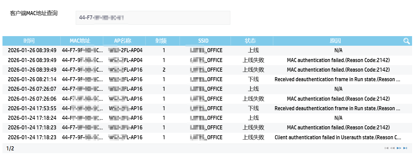 本地环境是通过MAC+密码认证的,但是我发现每个用户端连接状态是正常的,但后台看一只有在报认证的服务