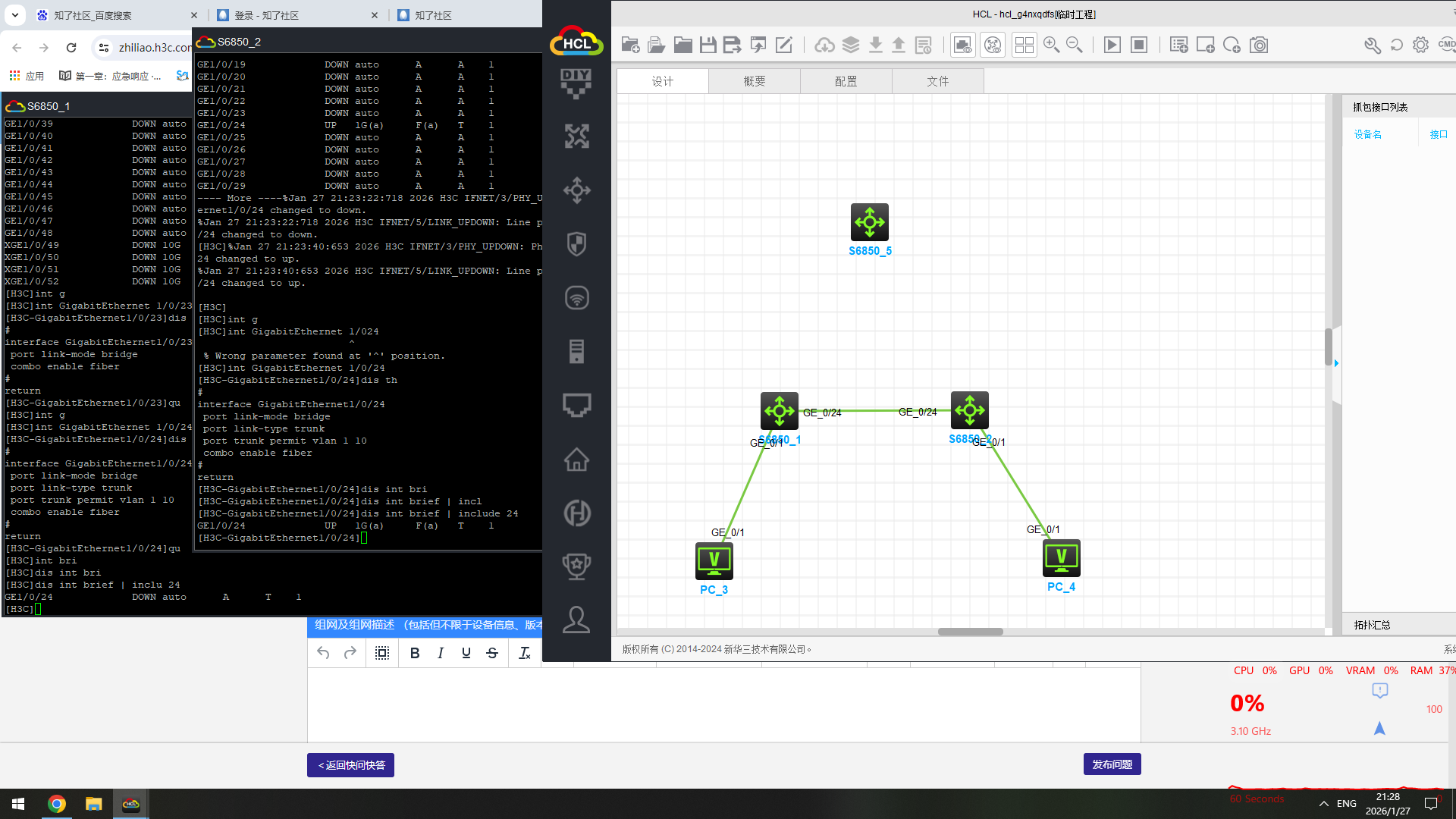 如图,为什么S6850_1交换机的24口没能起来,S6850_2交换机的24口正常使用。 HCL版本是5.10.3