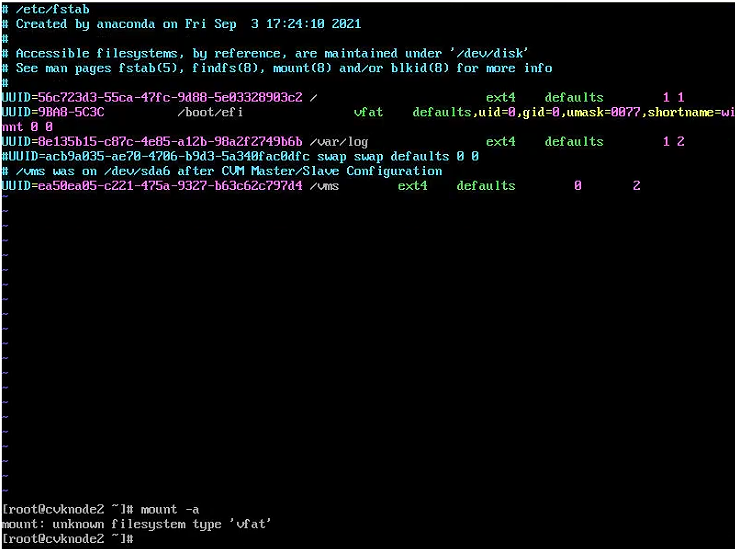 无法进入系统,如图所示,在维护模式下使用mount -a显示efi分区的vfat为未知的文件系统