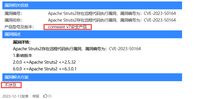H3C SecPath D2015-G H3C SecPath ACG1000-BE H3C SecPath A2025-G H3C SecPath L1030 H3C SecPath F1010 H3C SecPath GAP2000-BE H3C SecCenter CSAP-SA 是否涉及Struts2漏洞