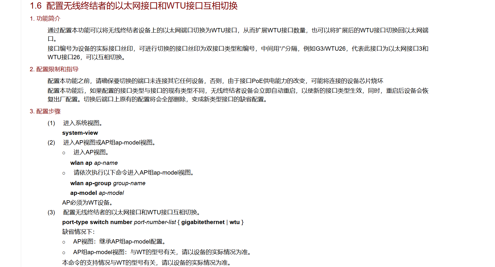 1.6 配置无线终结者的以太网接口和WTU接口互相切换