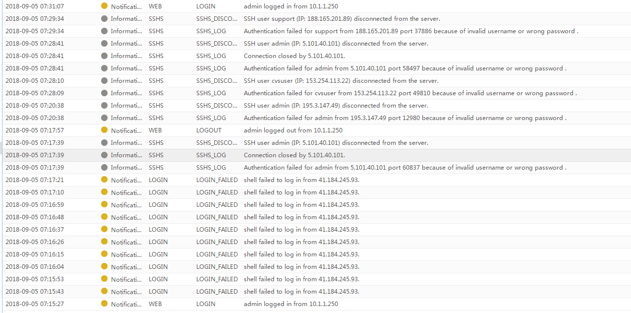 防火墙日志文件显示:防火墙一直被不同的IP地址访问,导致网络带宽溢出无法访问互联网。是否是防火墙内安全策略的问题,还请帮忙解答。