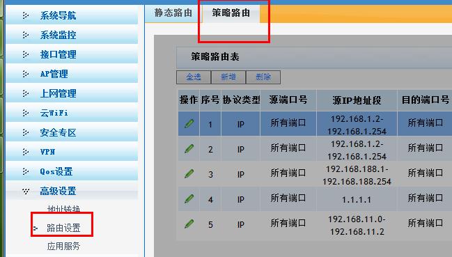 不同网段走不同线路,需要设置路由策略,指定源地址,目的地址是0.0.0.0 代表任何目的地址