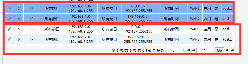 双线路接WAN2与WAN3,不同网段走不同线路,目的地址不知道设置有没有问题,但都能上网