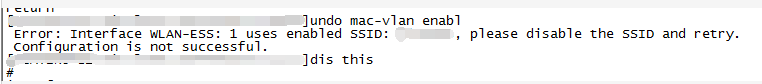 删除MAC-VLAN告警截图如下,请问如何disable ssid。尽量不要影响业务。麻烦给出具体的命令,谢谢!