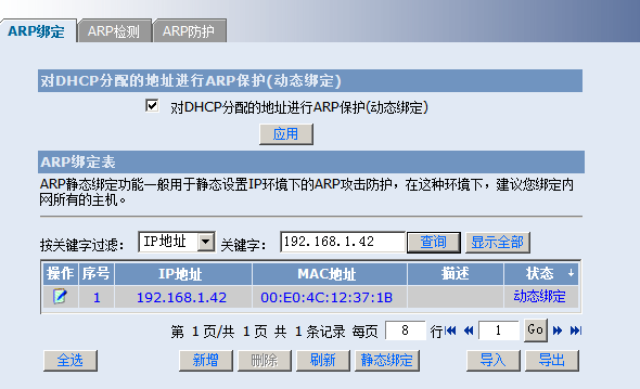 请问:在哪关闭DHCP呢?另DHCP静态表中MAC与IP绑定与ARP绑定有什么区别呢?还是说两种都 要绑定会好点?